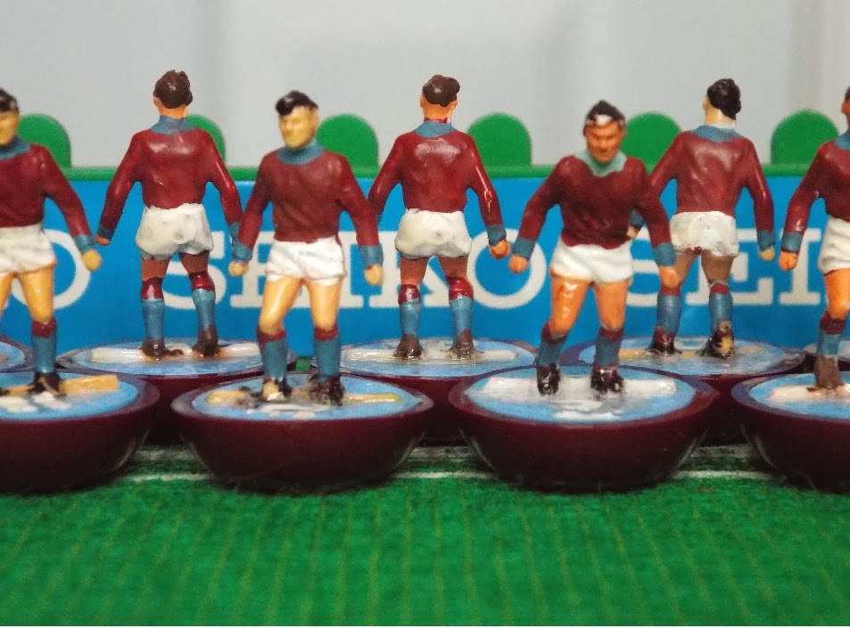 It was early 2000's when my Dad moved house and got a computer and discovered eBay and his Subbuteo buying went mad, he was picking up all sorts and back then it wasn't as expensive as it can be now, we also got involved in the Subbuteo club and there were regular swap meets around the country, this is where the bug really took over! It was around this time that I expanded my Subbuteo League from just 1 Division to 4, and I needed teams to fill it. So I started really attacking my Dad's spares, he had more now as he'd got quite a lot more stuff since buying on the internet, I'd prize players from bases, swap combinations and even flip discs upside down because the was paint on the other side. I did not even bother to strip them down, just layer the paint over the top until you can't see what's underneath any more, my earliest works are Burnley and the Scunthorpe United, two sides which have been ever present in my Subbuteo league. The Burnley was intended to be an Aston Villa but so bad was my painting it became a Burnley (Notice that different shades of blue on the players collars)