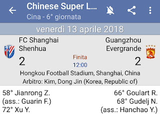 Ho anche visto in camera d'albergo una partita del Guangzhou Evergrande finita sul 2-2 in trasferta a Shanghai contro il Shenhua.